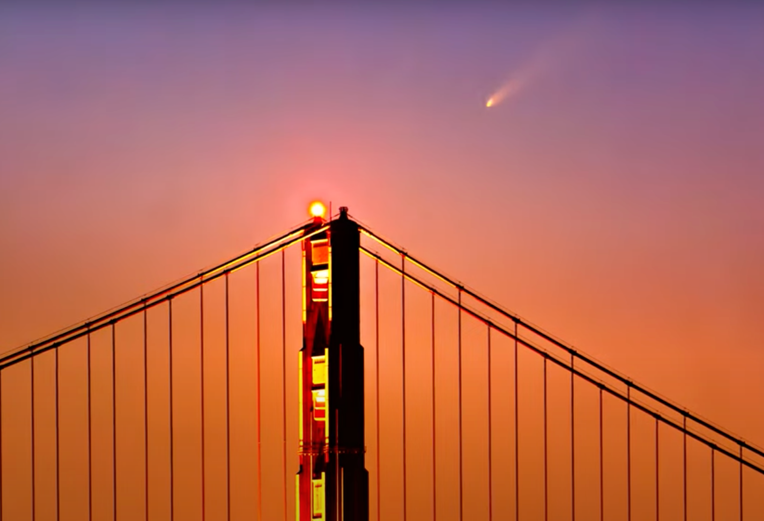 Comet Tsuchinshan-ATLAS didn’t disappoint over the weekend. Video captured by Shreenivasan Manievannan shows the comet zooming over the Golden Gate Bridge in San Francisco, California, at sunrise.