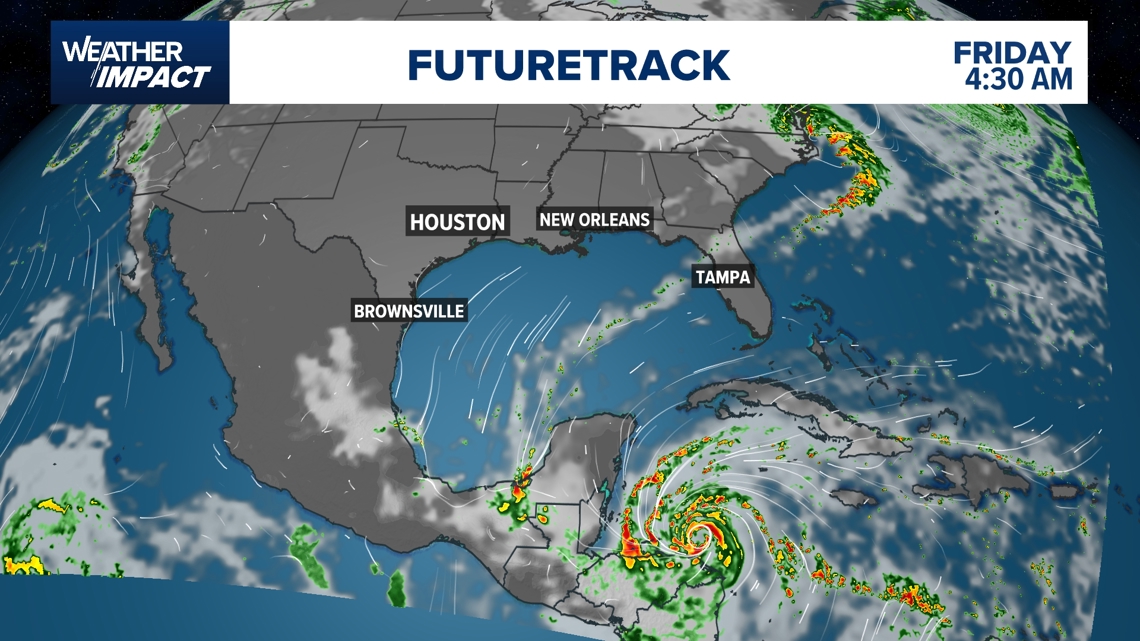 This time of year, climatology favors an eventual north to northeast path. That would lift the storm north into the Gulf of Mexico early next week, potentially steering it toward Florida as a strong tropical storm or hurricane.