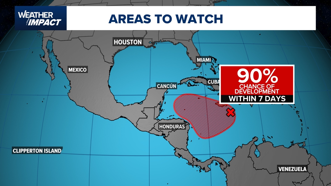 Right now, the National Hurricane Center has an 90% chance of tropical development over the next seven days and a 70% chance over the next two days.